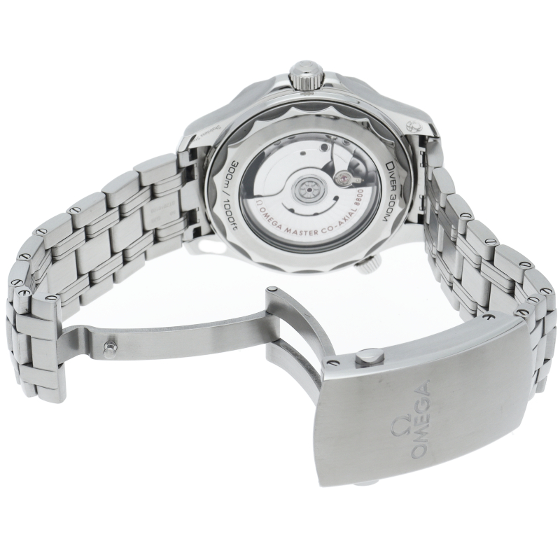 オメガの定番ダイバーズウォッチです。2018年に発表された最新型です。オメガ最新式の機械であるキャリバー8800を搭載しマスターコーアクシャル化されました。シースルーバックとなり、中の機械を見て楽しむ事ができます。