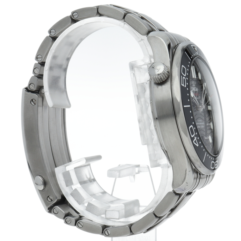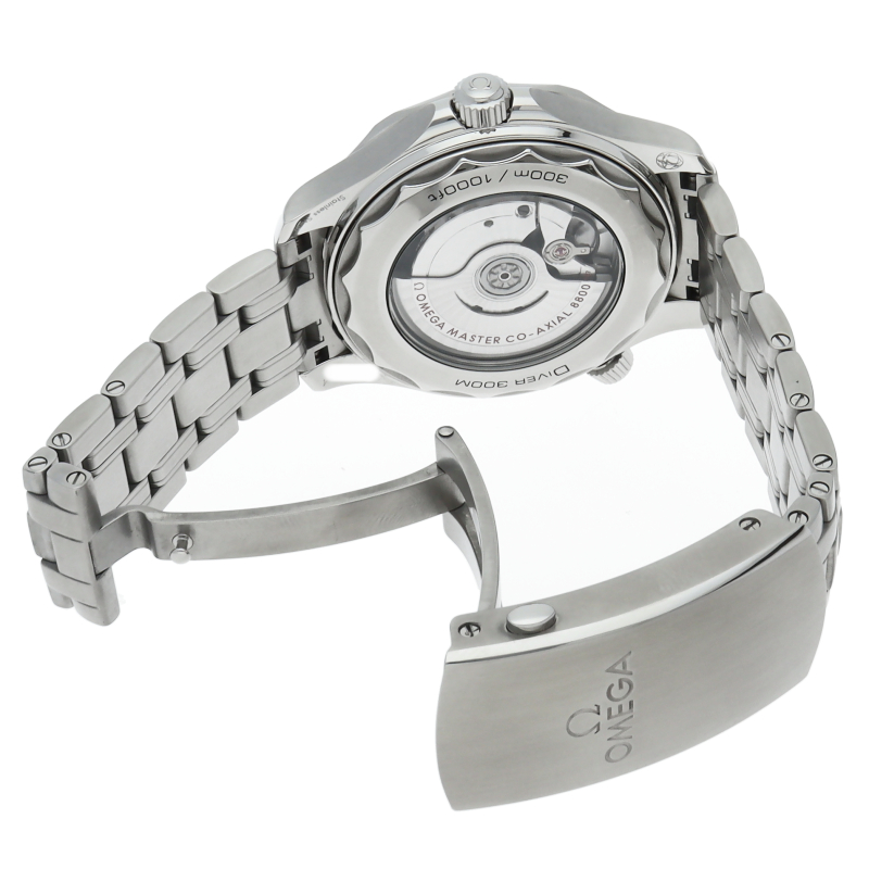 オメガの定番ダイバーズウォッチです。2018年に発表された最新型です。オメガ最新式の機械であるキャリバー8800を搭載しマスタークロノメーター化されました。シースルーバックとなり、中の機械を見て楽しむ事ができます。