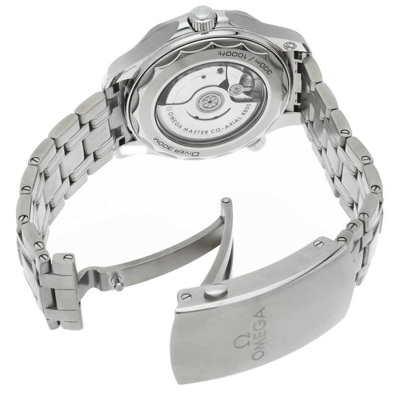 オメガの定番ダイバーズウォッチです。2018年に発表された最新型です。オメガ最新式の機械であるキャリバー8800を搭載しマスタークロノメーター化されました。シースルーバックとなり、中の機械を見て楽しむ事ができます。