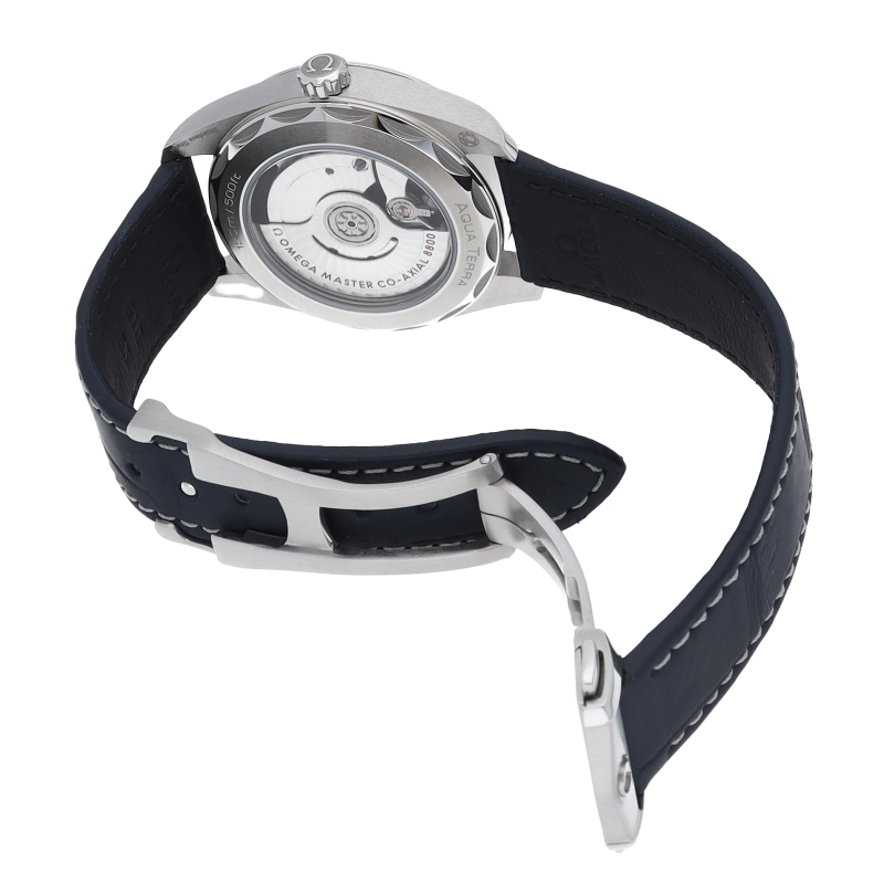 海に携わってきたオメガの長い歴史を代表する「シーマスター アクアテラ」 コレクション。シンメトリックな38mmのケースはステンレススティール製で、ケースバックはスケルトンとなっております。