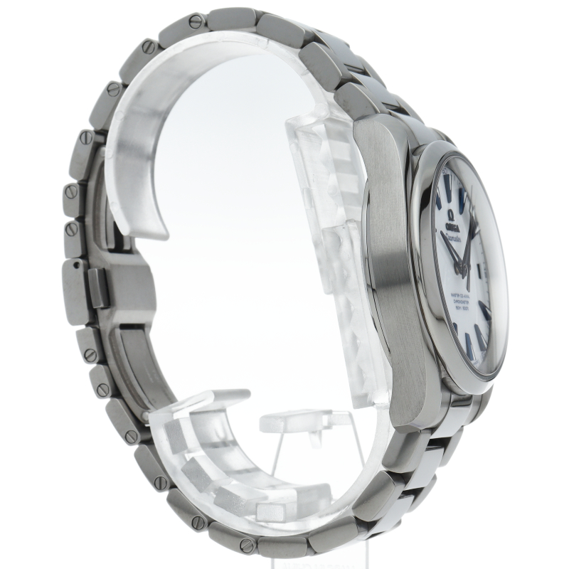 グッドプラネット財団とのパートナーシップを記念して誕生した「シーマスター アクアテラ」のオールチタンモデル。ラッカー仕上げホワイトのダイアルにブルーのアプライドインデックスが美しいデザインの1本。オメガ マスター コーアクシャル キャリバー8500搭載。