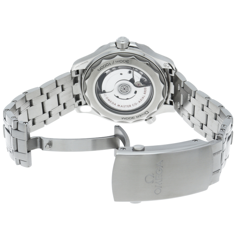 オメガの定番ダイバーズウォッチです。2018年に発表された最新型です。オメガ最新式の機械であるキャリバー8800を搭載しマスターコーアクシャル化されました。シースルーバックとなり、中の機械を見て楽しむ事ができます。