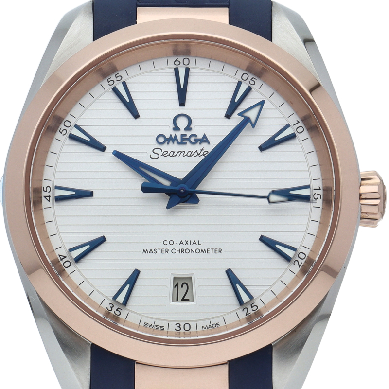 海に携わってきたオメガの長い歴史を代表する「シーマスター アクアテラ」コレクション。ダイヤルは豪華ヨットのウッドデッキをイメージさせる印象的なデザイン「チークコンセプト」と呼ばれる横ストライプのモチーフが採用されています。スイス連邦計量・認定局(METAS)認定の最高水準を誇るオメガ コーアクシャル マスター クロノメーター キャリバー8800搭載。