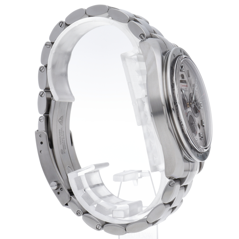 オメガのスピードマスターのファーストモデルをオマージュしたモデルで、通称「ブロードアロー」と呼ばれる針が特徴になっています。シースルーバックになっており、コーアクシャルムーブメントを堪能できます。