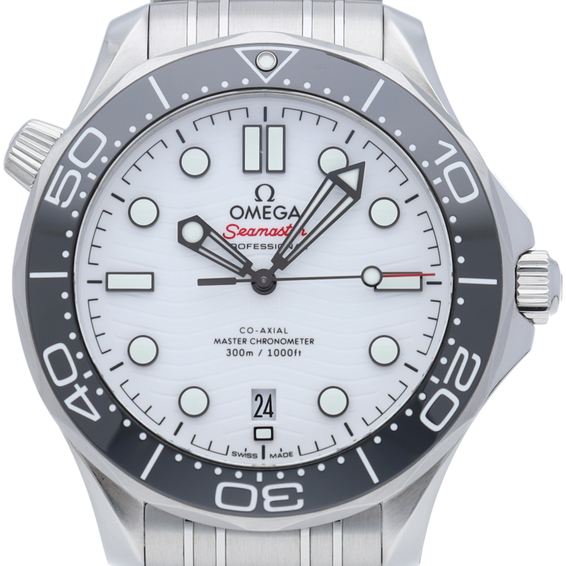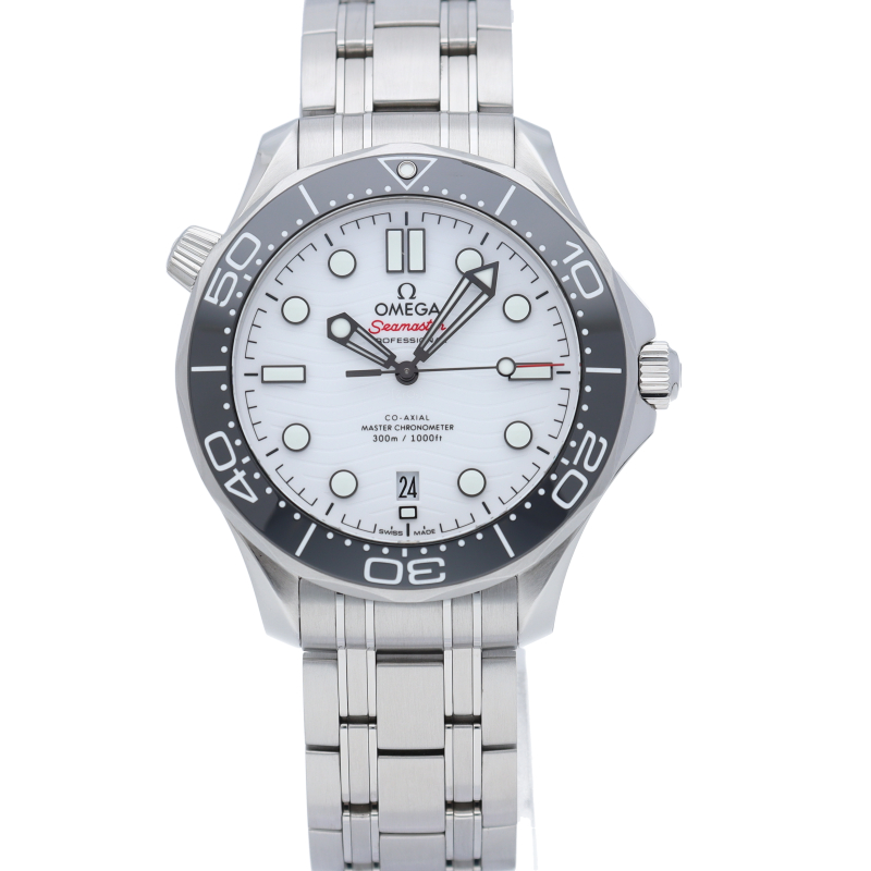 オメガの定番ダイバーズウォッチです。2018年のモデルチェンジ以降も大人気の現行シリーズにホワイトダイヤルが追加されました。オメガ開発のコーアクシャルムーブメント「Cal.8800」を搭載しており、300M防水にエスケープバルブなどケースもダイバーズとしてハイスペックな造りになっています。