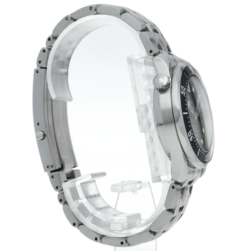 ブラックのセラミック製逆回転防止ベゼルは、ヘリウムエスケープバルブを備えた、直径36.25mmのステンレススティール製ケースに取り付けられています。このモデルには、ステンレススティール製ブレスレットが付いています。クロノメーターとして認定されているこのモデルは、コーアクシャル・キャリバー2500を搭載しています。