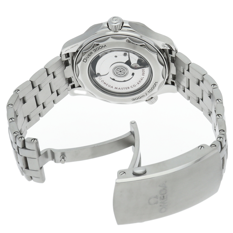 オメガの定番ダイバーズウォッチです。2018年に発表された最新型です。オメガ最新式の機械であるキャリバー8800を搭載しマスターコーアクシャル化されました。シースルーバックとなり、中の機械を見て楽しむ事ができます。