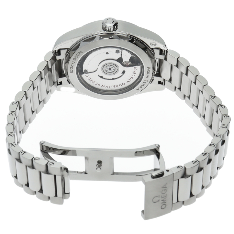 オメガと海の豊かな歴史にオマージュを捧げる「シーマスター アクアテラ」。シンメトリックな38mmケースはステンレススティール製で、ポリッシュ仕上げのリュウズ、ケースバックにはウェーブ模様で縁取られたデザインが施されています。スイス連邦計量・認定局(METAS)認定の業界最高水準を誇るオメガ コーアクシャル マスター クロノメーター キャリバー8800が搭載。