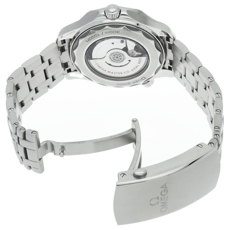 オメガの定番ダイバーズウォッチです。2018年に発表された最新型です。オメガ最新式の機械であるキャリバー8800を搭載しマスターコーアクシャル化されました。シースルーバックとなり、中の機械を見て楽しむ事ができます。