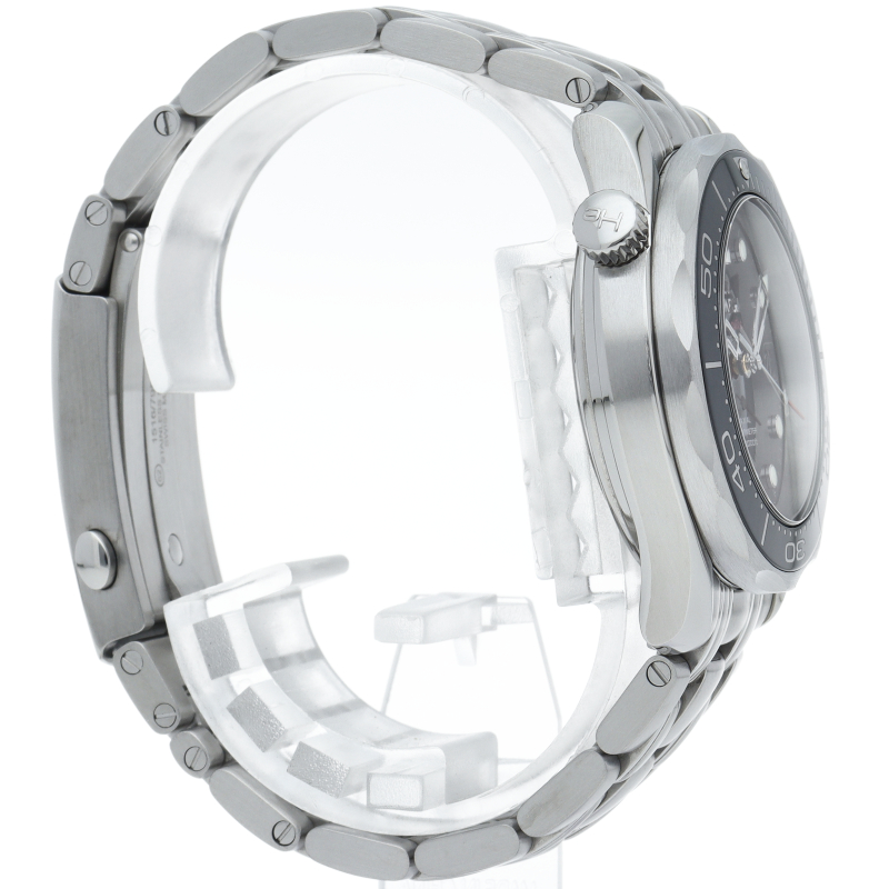 ブラックのセラミック製逆回転防止ベゼルは、ヘリウムエスケープバルブを備えた、直径36.25mmのステンレススティール製ケースに取り付けられています。このモデルには、ステンレススティール製ブレスレットが付いています。クロノメーターとして認定されているこのモデルは、コーアクシャル・キャリバー2500を搭載しています。