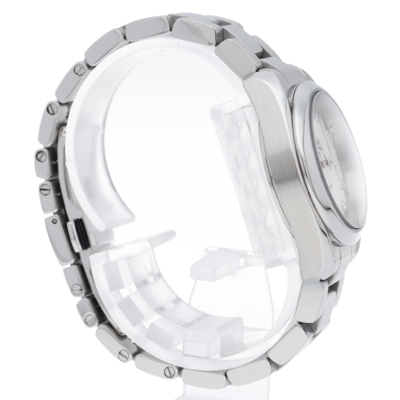 スタイリッシュな『シーマスター アクアテラ』。ホワイトマザーオブパールのダイアルのインデックスにはダイヤモンドがセッティングされ、華やかな雰囲気を演出。スポーティーながらエレガンスも感じさせる一本になっています。
