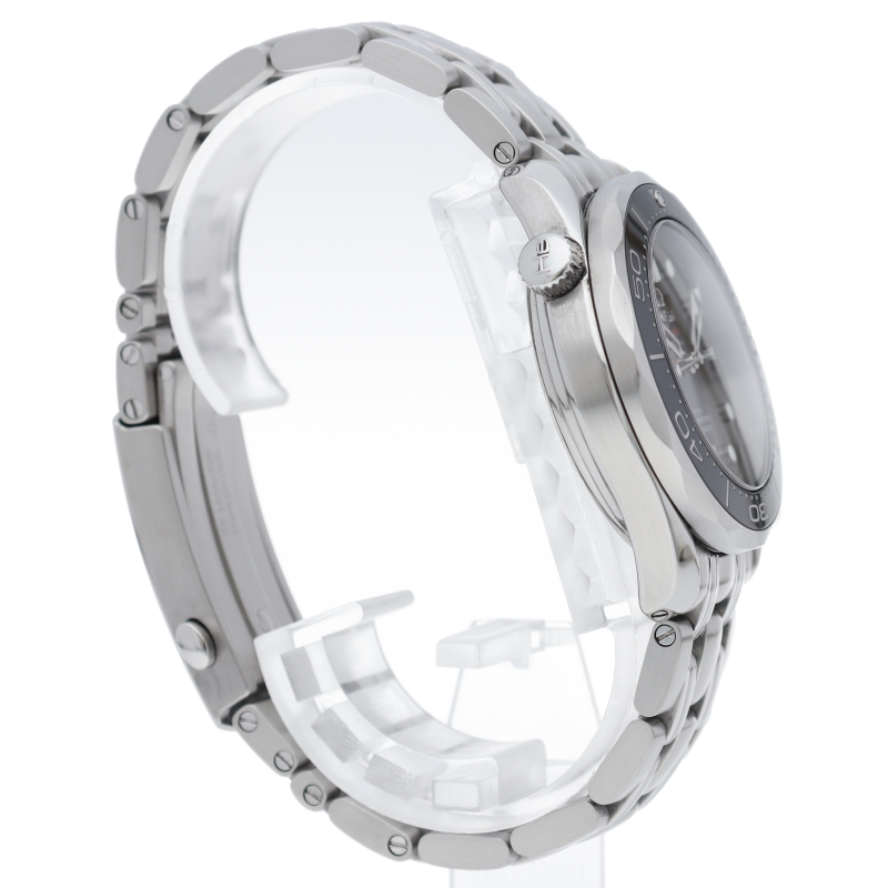 ブラックのセラミック製逆回転防止ベゼルは、ヘリウムエスケープバルブを備えた、直径36.25mmのステンレススティール製ケースに取り付けられています。このモデルには、ステンレススティール製ブレスレットが付いています。クロノメーターとして認定されているこのモデルは、コーアクシャル・キャリバー2500を搭載しています。