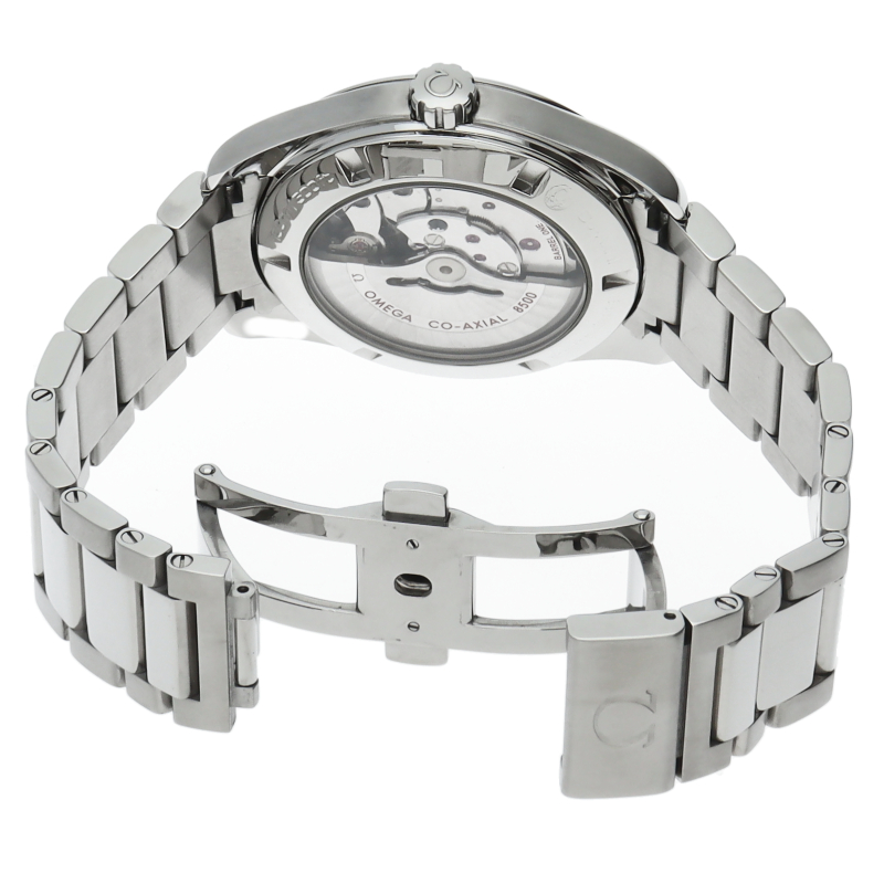 防水時計の代名詞オメガ・シーマスターに属する、スタンダード・コレクションが「シーマスター アクアテラ」です。スタイリッシュなデザインと革新的なテクノロジーが融合したコレクションです。フリースプラングテンプを採用した、60時間のパワーリザーブを備える、オメガ自社製自動巻きムーブメント・オメガ8500を搭載しています。ケースバックはシースルー仕様となっております。