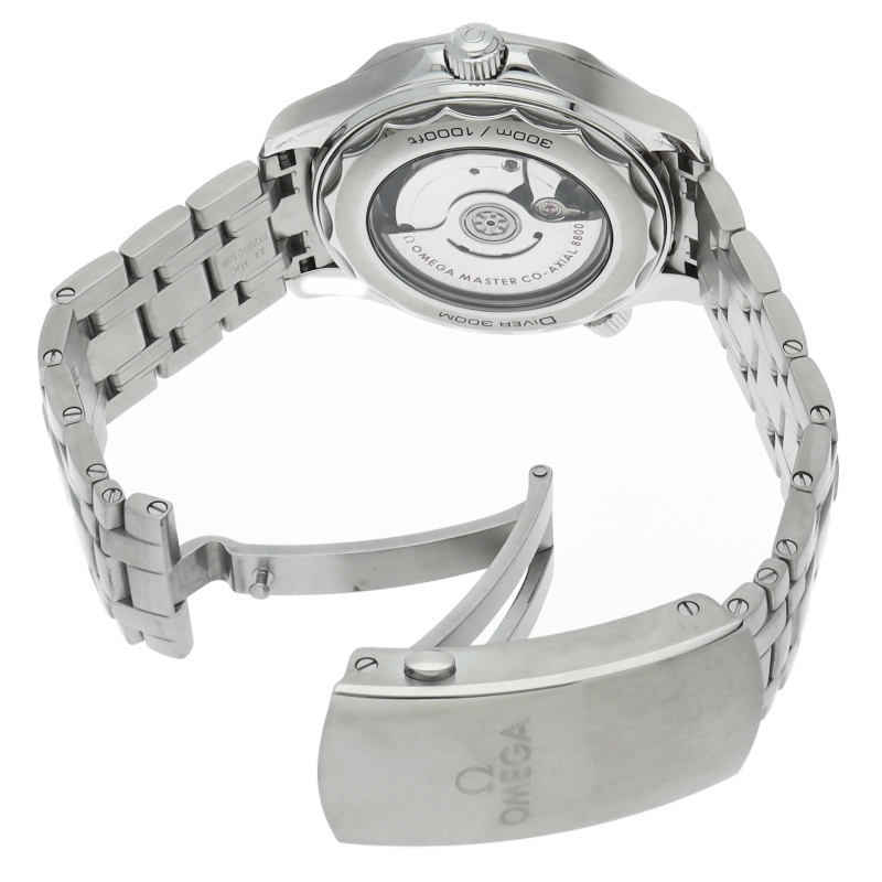 オメガの定番ダイバーズウォッチです。2018年に発表された最新型です。オメガ最新式の機械であるキャリバー8800を搭載しマスターコーアクシャル化されました。シースルーバックとなり、中の機械を見て楽しむ事ができます。