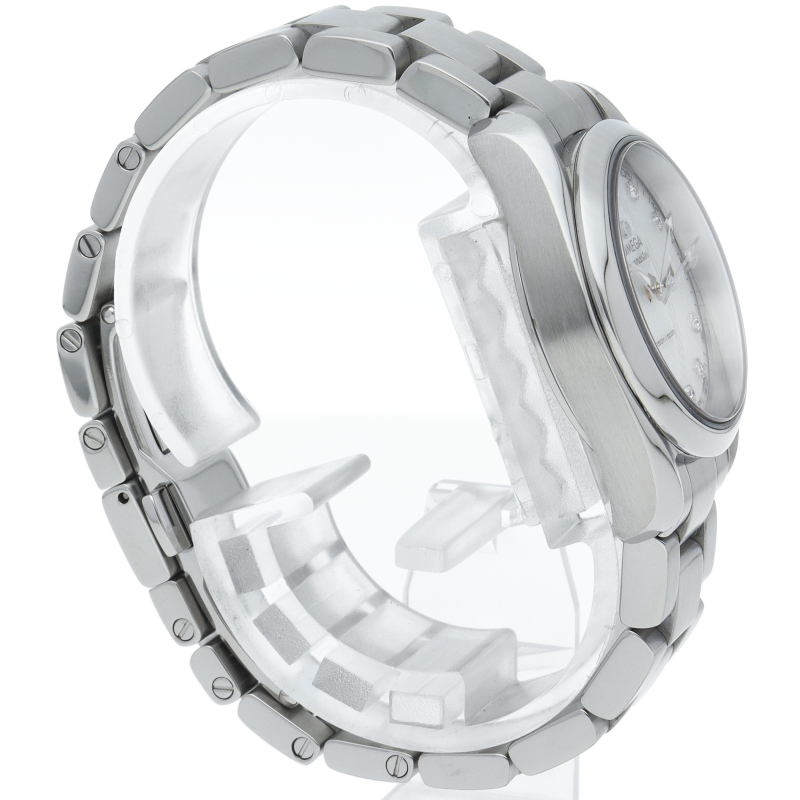 スタイリッシュな『シーマスター アクアテラ』。ホワイトマザーオブパールのダイアルのインデックスにはダイヤモンドがセッティングされ、華やかな雰囲気を演出。スポーティーながらエレガンスも感じさせる一本になっています。