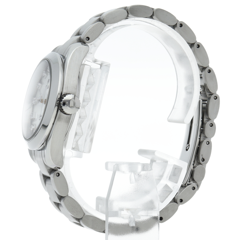 スタイリッシュな『シーマスター アクアテラ』。シェル文字盤にインデックスにはダイヤモンドがセッティングされ、華やかな雰囲気を演出。スポーティーながらエレガンスも感じさせる一本になっています。