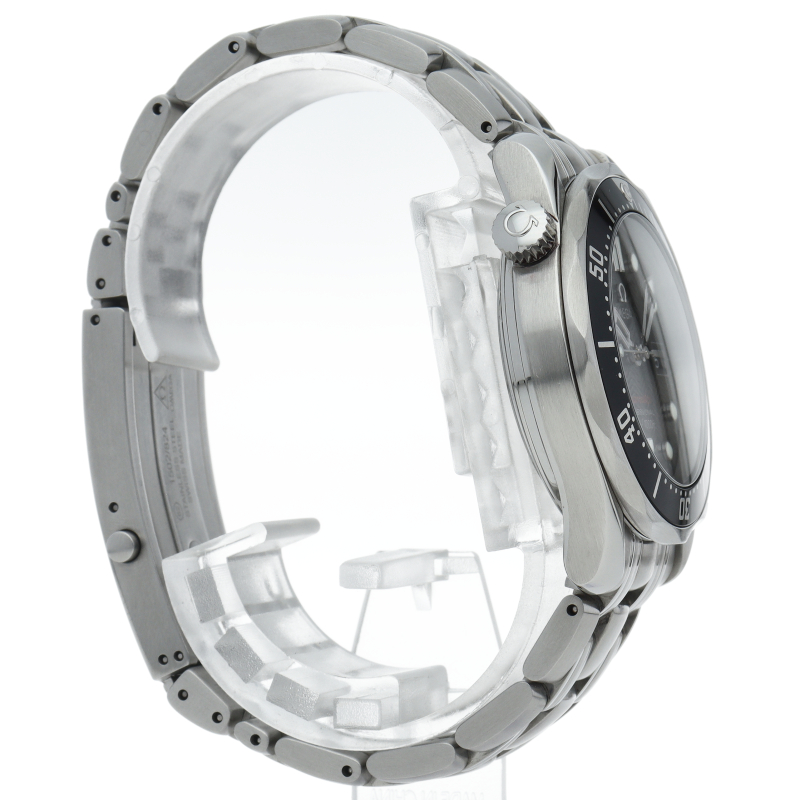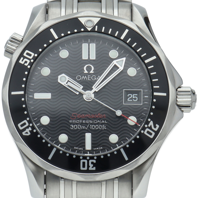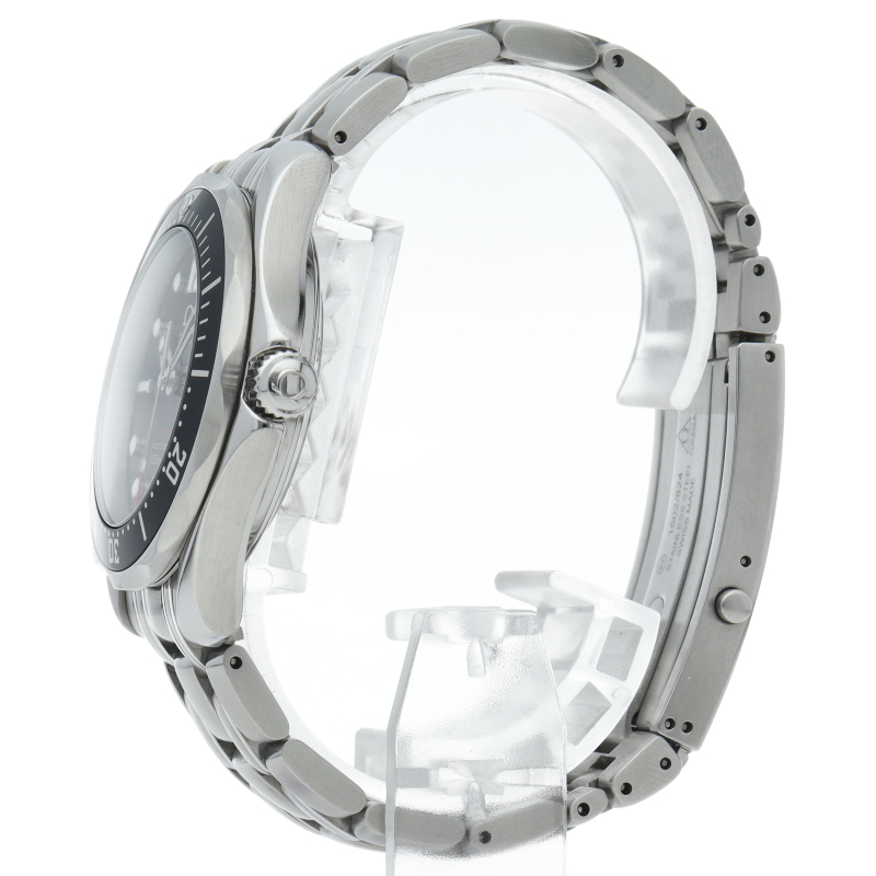 オメガを代表する人気ダイバーズウォッチ「シーマスター」。ヘリウムエスケープバルブを備えた本格的な多機能ダイバーズモデル。黒い文字盤がシャープな印象でスポーティ。ビジネスシーンから本格的なダイビングまでカバーできるオススメの一本です。