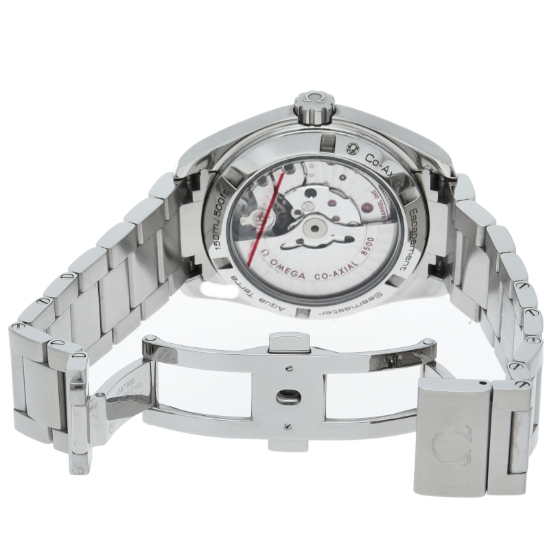 海に携わってきたオメガの長い歴史を代表する「シーマスター アクアテラ」 コレクション。シンメトリックな38.5mmのケースはステンレススティール製で、ケースバックはスケルトンとなっております。