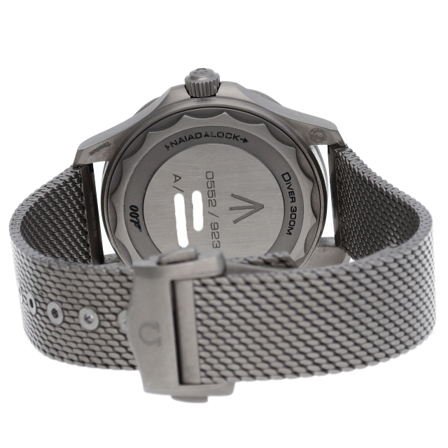 映画007の「ノータイム トゥ ダイ」で実際にジェームズ・ボンドが着用するモデルと同一デザインが心をくすぐる一品。そのデザインにはダニエル・クレイグの意見が反映されており、劇中のジェームズ・ボンドが英国海軍中佐の設定ということもあり、文字盤の6時位置には英国軍官給品である事を示すブロードアローがプリントされており、裏蓋にも同様のエングレービングが施されています。