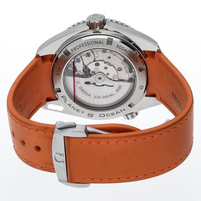 オメガの本格的なダイバーズウォッチで「プラネットオーシャン」。このモデルは60気圧(600m/2000feet)防水で、ヘリウムエスケープバルブを備えています。クロノメーターとして認定され、2011年に生まれ変わった、このモデルの中核を成すコーアクシャル キャリバー8500は、シースルーのケースバックから眺めることができます。