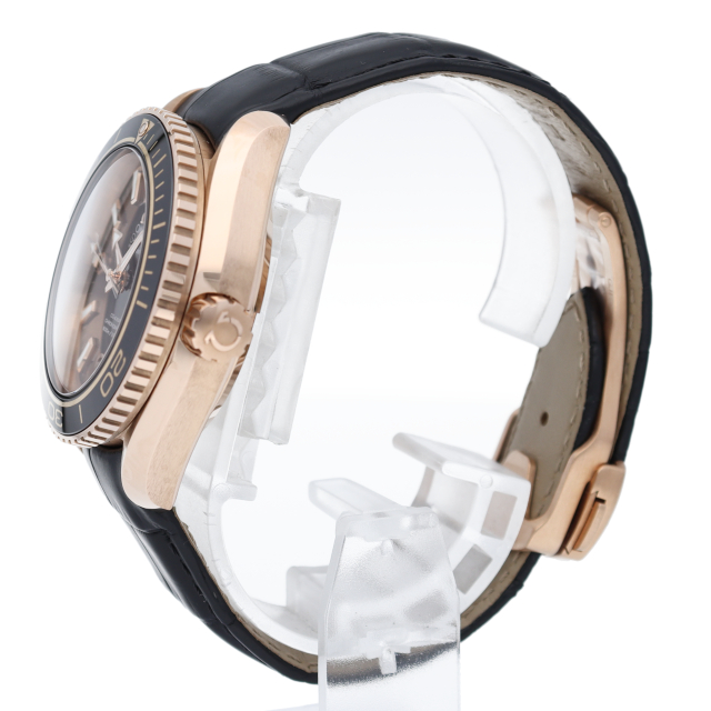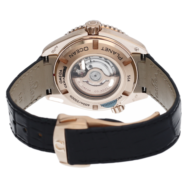 自社製コーアクシャルムーブメントのcal.8521が搭載された【シーマスター プラネットオーシャン600M】。レッドゴールド製ケースのベゼルプレートには耐傷性に優れたブラックセラミックを採用するなど高級感とダイバーウォッチとしてのこだわりが感じられる一本です。