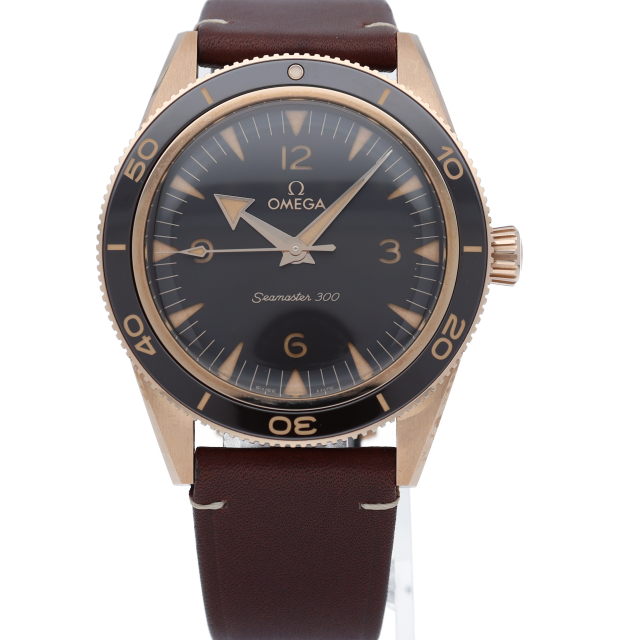 オメガが「シーマスター 300」初めて発表してから60年以上を経て、コレクションは全面的にアップグレードされこの特別なモデルは、オメガ独自のブロンズ合金製になりました。ブロンズの文字盤は、スーパールミノヴァが施された凹型アワーマーカーとオープンワークの数字、PVDブロンズゴールドカラーの針が配されたデザインです。
