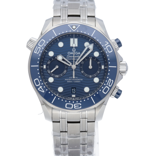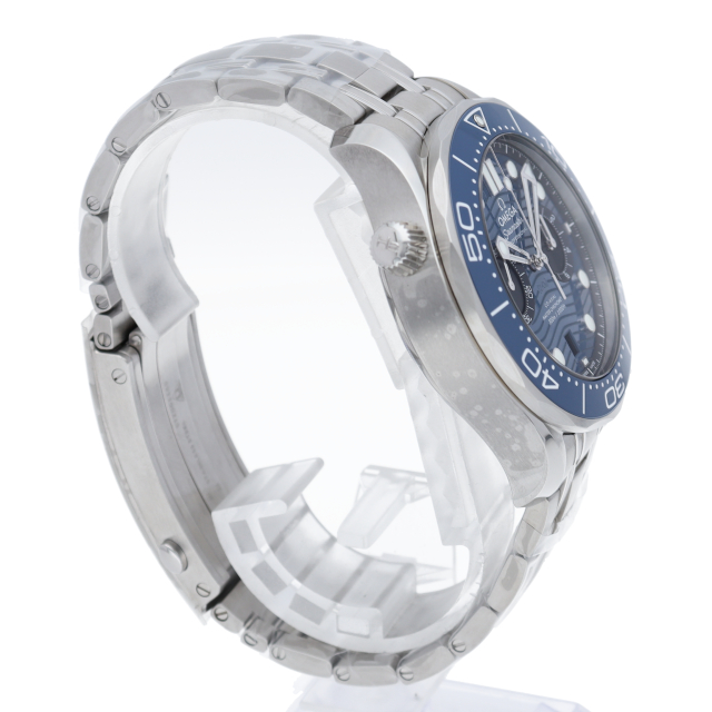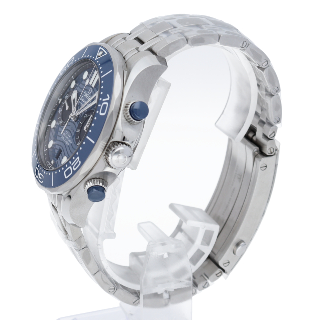 「シーマスターダイバー300M」は、1993年の発売以来、伝説的な支持を誇っています。現在のモダンなコレクションでは、この有名なダイバーズウォッチが、オメガが誇る最先端の技術とデザインによってアップデートされています。この44 mmのクロノグラフモデルはステンレススティール製で、ポリッシュ仕上げのブルーセラミックベゼルにはホワイトエナメルのダイビングスケールが付いています。
