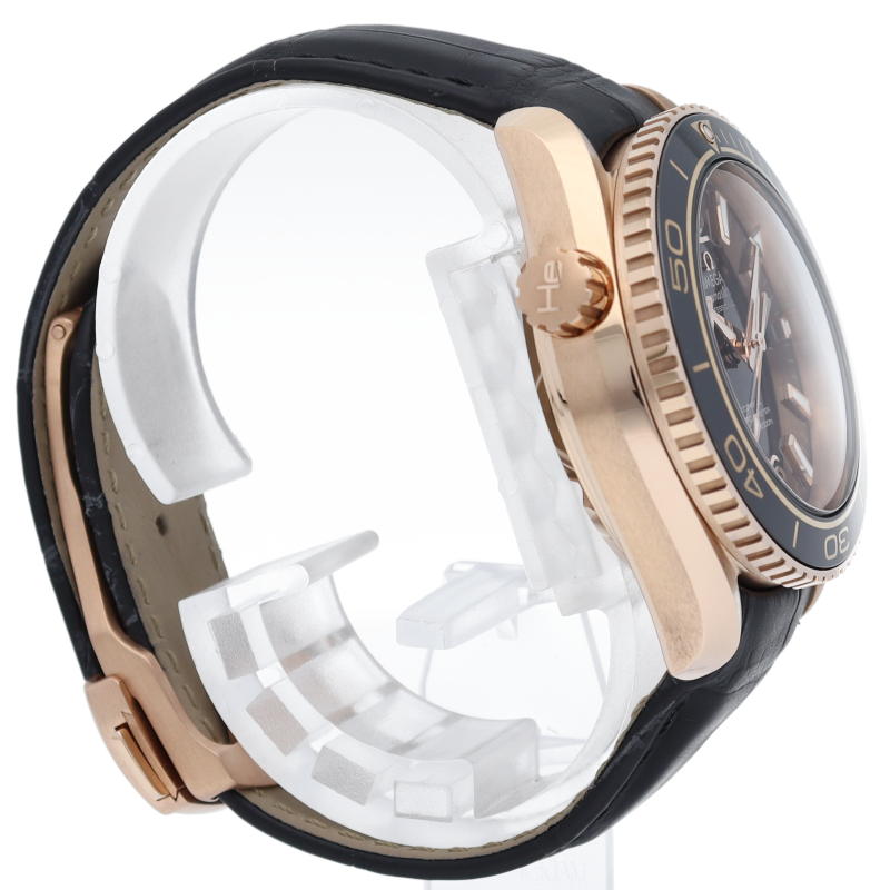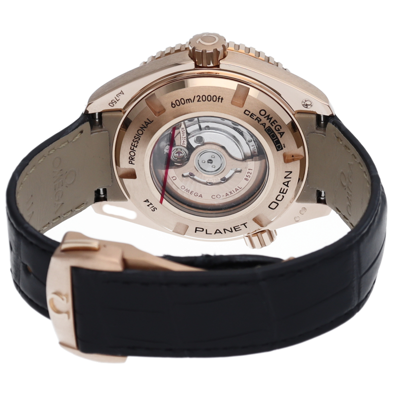 自社製コーアクシャルムーブメントのcal.8521が搭載された【シーマスター プラネットオーシャン600M】。レッドゴールド製ケースのベゼルプレートには耐傷性に優れたブラックセラミックを採用するなど高級感とダイバーウォッチとしてのこだわりが感じられる一本です。