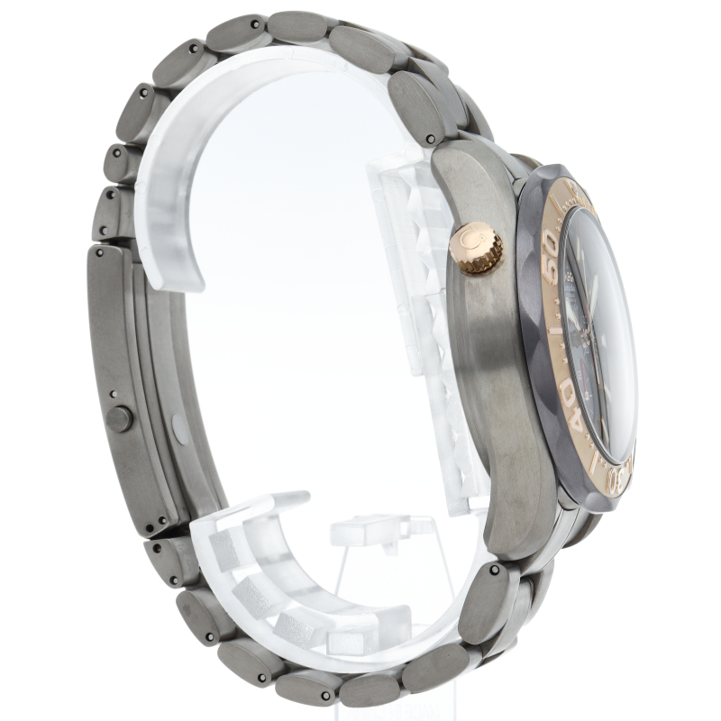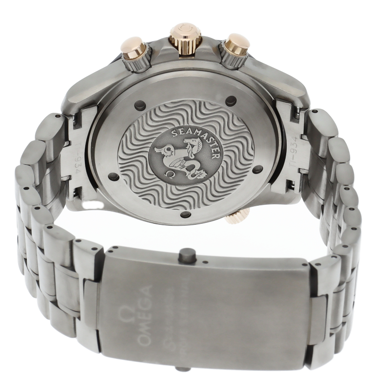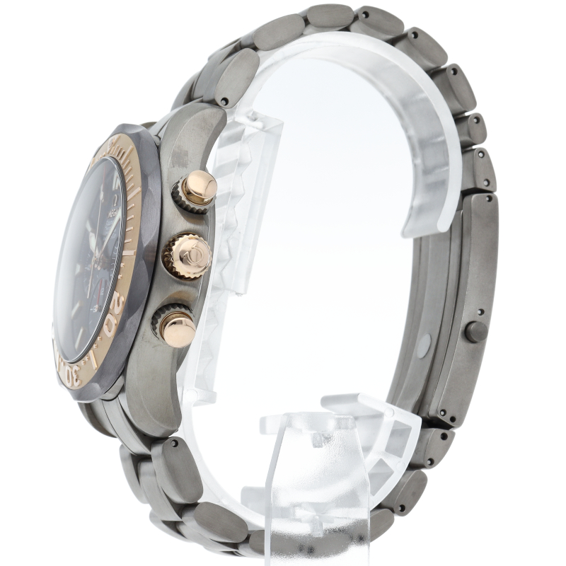 シーマスタープロダイバーズ300のクロノグラフバージョン。自動巻きクロノグラフムーブメントを搭載していることで、その厚さはかなりのもの。水中でクロノグラフを操作することも可能という本格派ダイバーズクロノグラフともいえます。