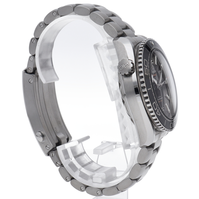 オメガの本格的なダイビングウォッチ「プラネットオーシャン」。ヘリウムエスケープバルブやコーアクシャル脱進機搭載。タイムピースの心臓部にはオメガマスタークロノメーターキャリバー8900が搭載されており、シースルーケースバックから眺めることができます。