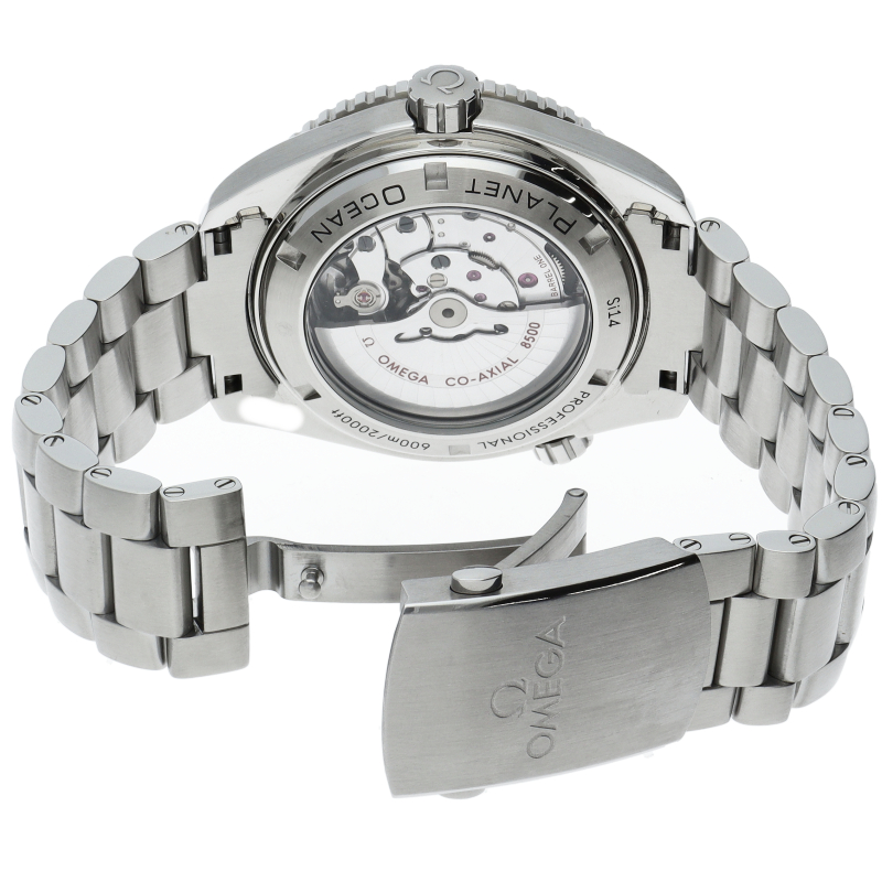 オメガの人気ダイバーズウォッチ「プラネットオーシャン」。モデルチェンジに伴い、スポーテ自社製ムーブメントcal.8500が搭載された「シーマスタープラネットオーシャン」。シースルーバックを採用しており、ムーブメントも堪能できます。