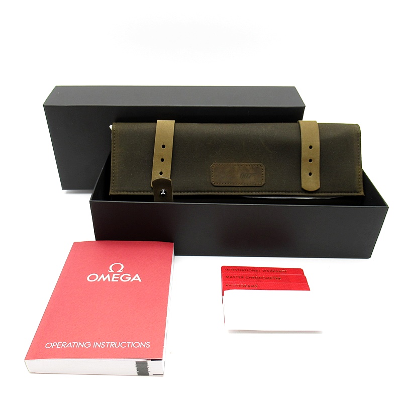 映画007の「ノータイム トゥ ダイ」で実際にジェームズ・ボンドが着用するモデルと同一デザインが心をくすぐる一品。そのデザインにはダニエル・クレイグの意見が反映されており、劇中のジェームズ・ボンドが英国海軍中佐の設定ということもあり、文字盤の6時位置には英国軍官給品である事を示すブロードアローがプリントされており、裏蓋にも同様のエングレービングが施されています。