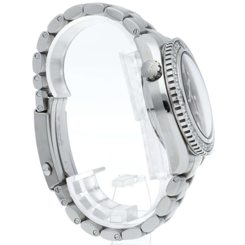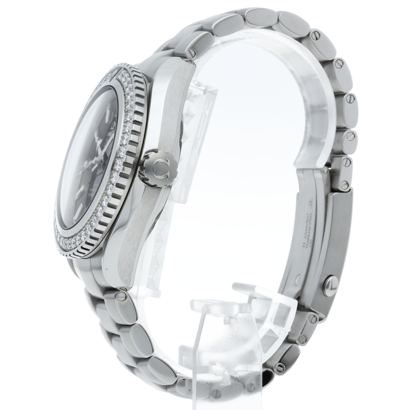 オメガのプロフェッショナルダイバーウォッチ「シーマスタープラネットオーシャン」。こちらはケース径45.5mmでベゼルにダイヤモンドをセッティングしたゴージャスなモデル。スポーティーながらドレッシーでエレガンスも感じさせる一本になっています。