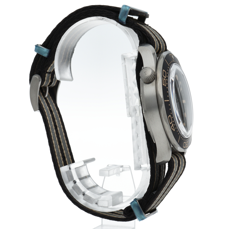 『007 ノー・タイム・トゥ・ダイ』に登場する007のウォッチと全く同じ、この直径42mmの「シーマスター」は堅牢でありながら軽量なグレード2チタン製で、スポーティーでブラウン トロピカルのアルミニウムを使用したベゼルリングとダイアルが特徴です。007エディションの「ダイバー300M」は、業界最高水準を誇る精度と計時の性能、耐磁性を備えたオメガ コーアクシャル マスター クロノメーター キャリバー8806搭載。