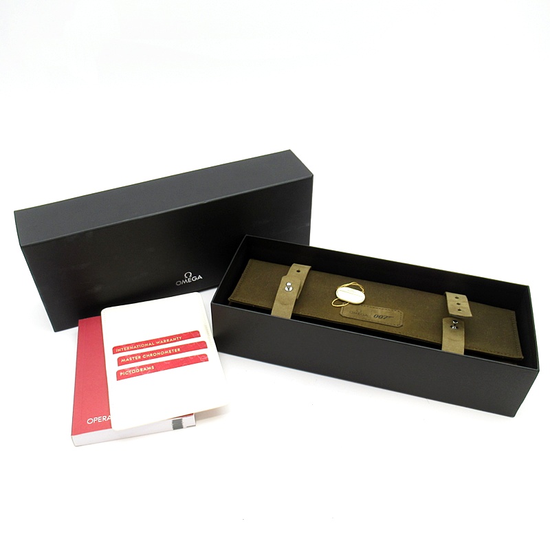 映画007の「ノータイム トゥ ダイ」で実際にジェームズ・ボンドが着用するモデルと同一デザインが心をくすぐる一品。そのデザインにはダニエル・クレイグの意見が反映されており、劇中のジェームズ・ボンドが英国海軍中佐の設定ということもあり、文字盤の6時位置には英国軍官給品である事を示すブロードアローがプリントされており、裏蓋にも同様のエングレービングが施されています。