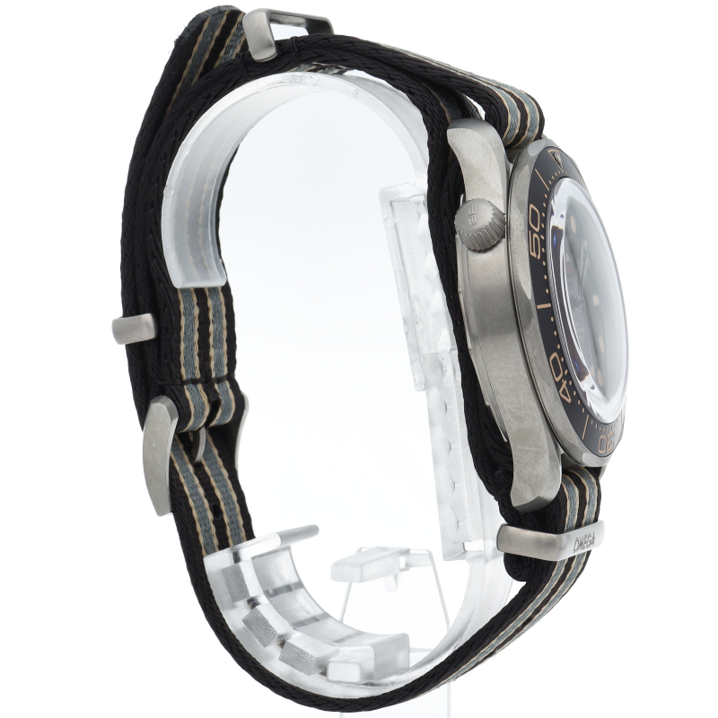 『007 ノー・タイム・トゥ・ダイ』に登場する007のウォッチと全く同じ、この直径42mmの「シーマスター」は堅牢でありながら軽量なグレード2チタン製で、スポーティーでブラウン トロピカルのアルミニウムを使用したベゼルリングとダイアルが特徴です。007エディションの「ダイバー300M」は、業界最高水準を誇る精度と計時の性能、耐磁性を備えたオメガ コーアクシャル マスター クロノメーター キャリバー8806搭載。