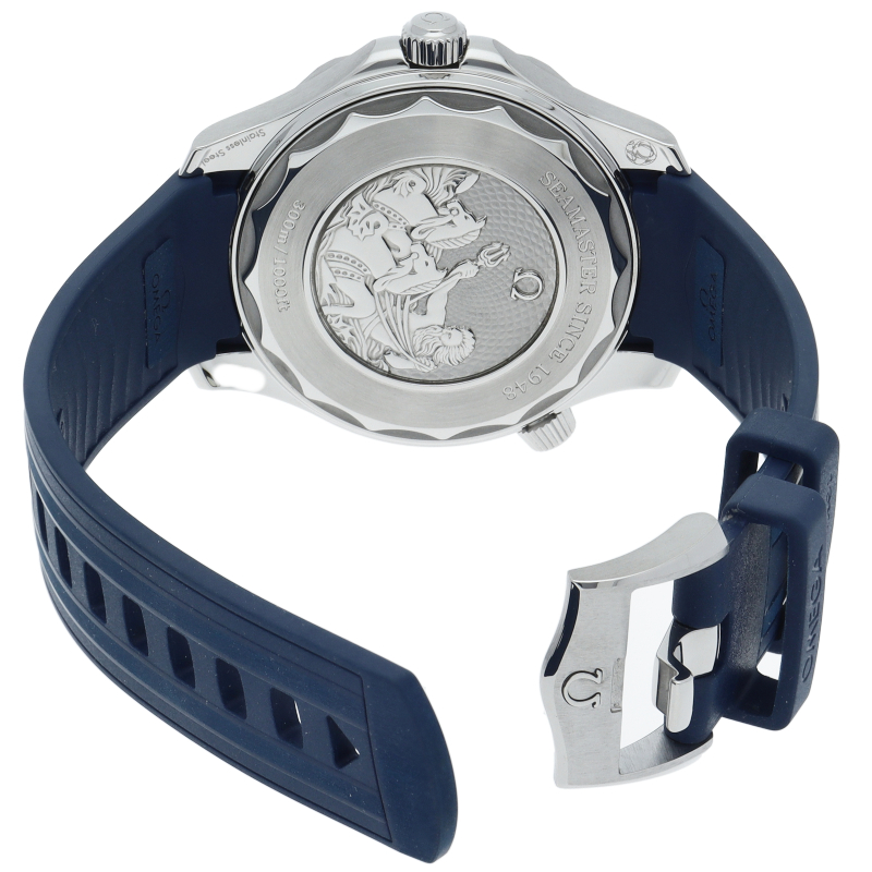 「シーマスターダイバー300M」は、1993年の発売以来、伝説的な支持を誇っています。文字盤とダイビングベゼルには耐久性に優れたブルーセラミックを採用し、文字盤には初代モデルにあったレーザー加工の波模様をブルー色のグラデーションで表現しております。