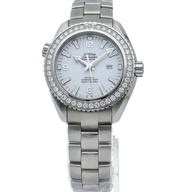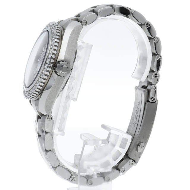 オメガのプロフェッショナルダイバーウォッチ「シーマスタープラネットオーシャン」。こちらはケース径37.5mmでベゼルにダイヤモンドをセッティングしたゴージャスなモデル。スポーティーながらドレッシーでエレガンスも感じさせる一本になっています。