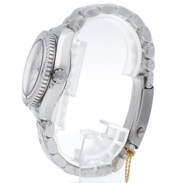 オメガのプロフェッショナルダイバーウォッチ「シーマスタープラネットオーシャン」。こちらはケース径37.5mmでベゼルにダイヤモンドをセッティングしたゴージャスなモデル。スポーティーながらドレッシーでエレガンスも感じさせる一本になっています。