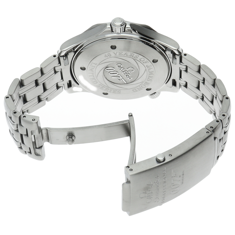 1962年第1作「ドクター・ノオ」公開から40周年を記念して製作された、世界10007本限定モデルです。ダイヤル全体にデザインされた「007」のロゴが印象的。裏蓋にも「007」とシリアル刻印があります。
