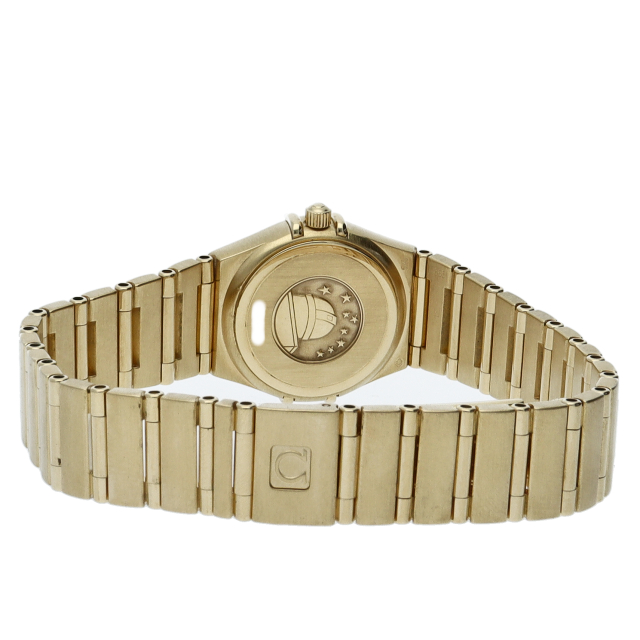 オメガを代表するドレスウォッチ「コンステレーション」。上品なイエローゴールド色に、独特の光沢をもつホワイトシェルの文字盤が組み合わされ、フォーマル・ビジネスの場で輝きます。