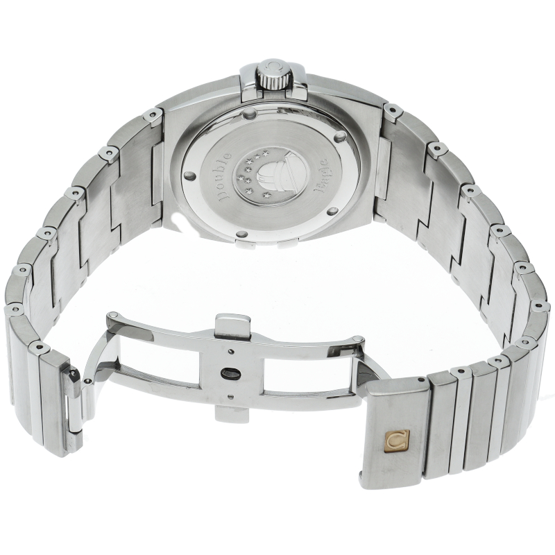 オメガを代表するドレスウォッチ「コンステレーション」。このダブルイーグルは、エレガントな美しさを秘めたコンステレーションです。ムーブメントにはパーペチュアルカレンダー機能付クォーツムーブメントを採用しています。