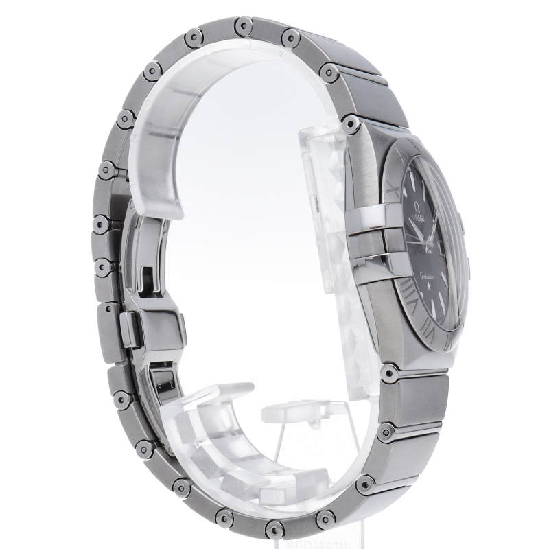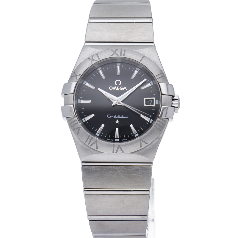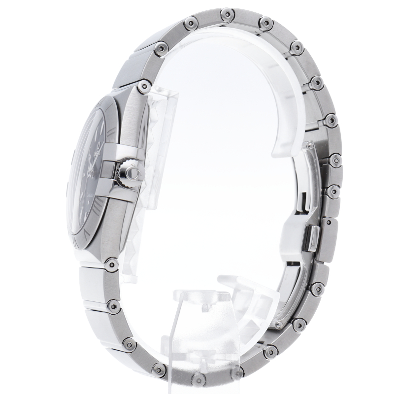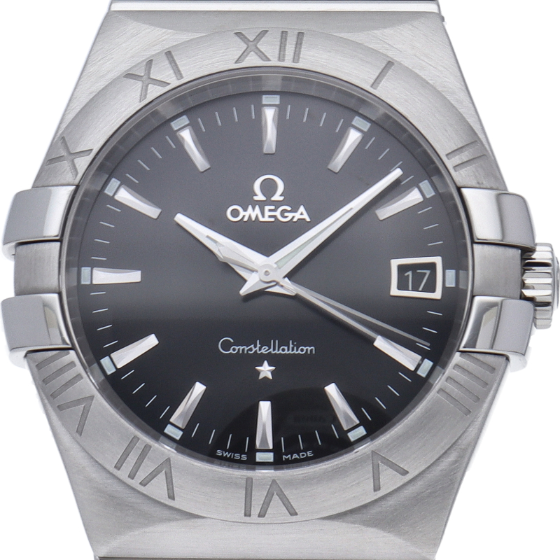 オメガの「コンステレーション」コレクションは不朽のデザインコンセプトを備え、有名な「爪」と印象的なダイアルが特徴です。ブラックダイアルの3時位置には日付窓が配置され、傷の付きにくいサファイア・クリスタルガラスを採用。ローマ数字が刻印されたべゼルとステンレススティール製ブレスレットが取り付けられています。
