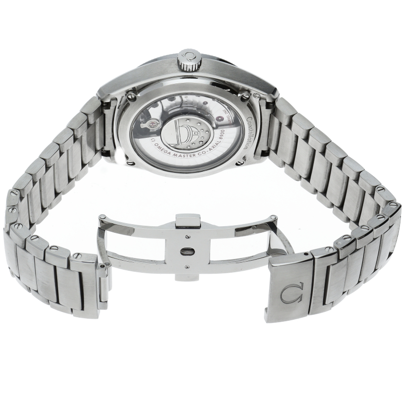 オメガを代表するドレスウォッチ「コンステレーション」。中でもこのモデルはロジウム仕上げの「コンステレーション」の星、スーパールミノヴァが塗布されたインデックスと針が添えられています。コーアクシャルマスタークロノメーターキャリバー8900搭載。