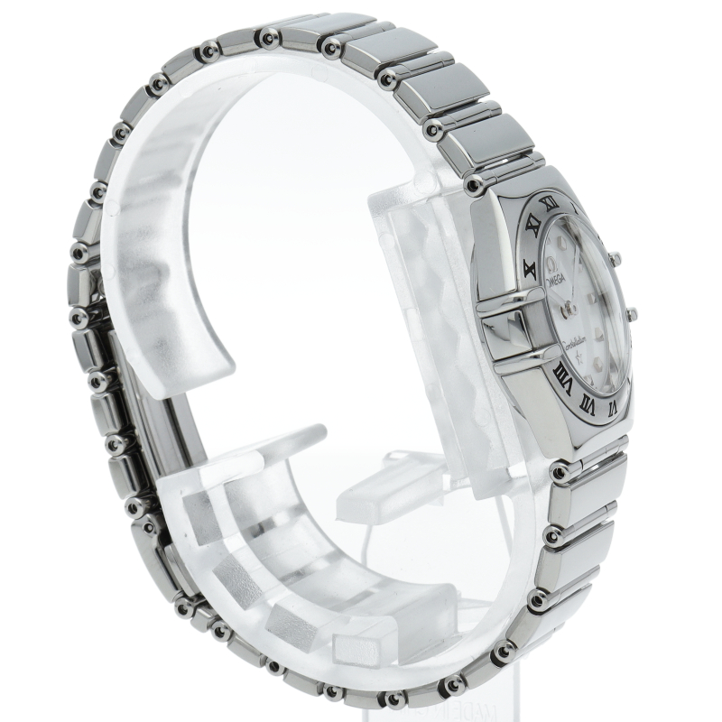 オメガを代表するドレスウォッチ「コンステレーション」。シンプルかつ上品なデザインでスタイルを選ばずに使用できる人気モデル。可愛らしいミニサイズ。