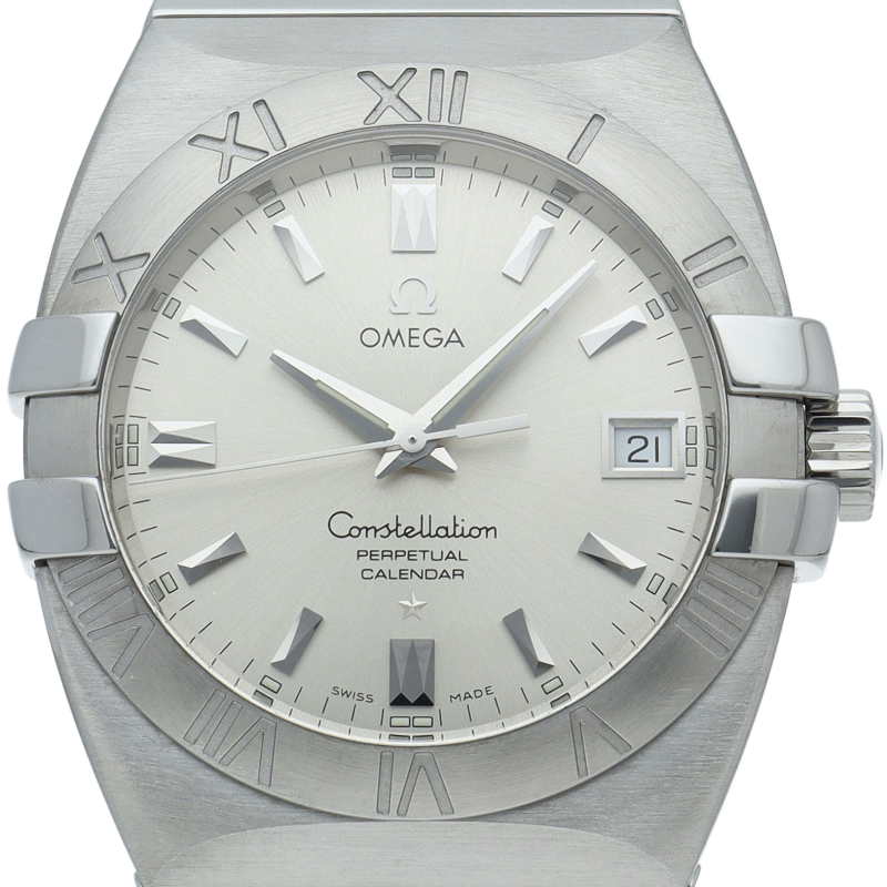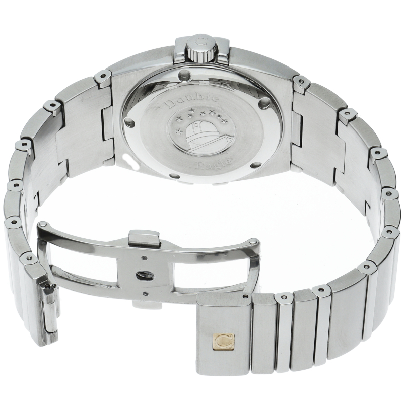 オメガの人気コンステレーションシリーズに新たに加わった「ダブルイーグル」。大き目のフォルムが特徴的なインパクトある1本。パーペチュアルカレンダー機能付。