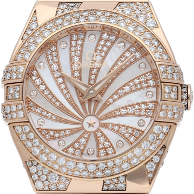 「コンステレーション ラグジュアリー エディション」オメガの「コンステレーション」コレクションは非常にドラマチックな不朽のデザインコンセプトを備え、有名な「爪」と印象的なダイアルが特徴です。ダイヤルにはスノーセッティング ダイヤモンドでスーパーノヴァ模様が描かれ、K18レッドゴールド製ブレスレットの装飾と滑らかにつながるデザインとなっています。