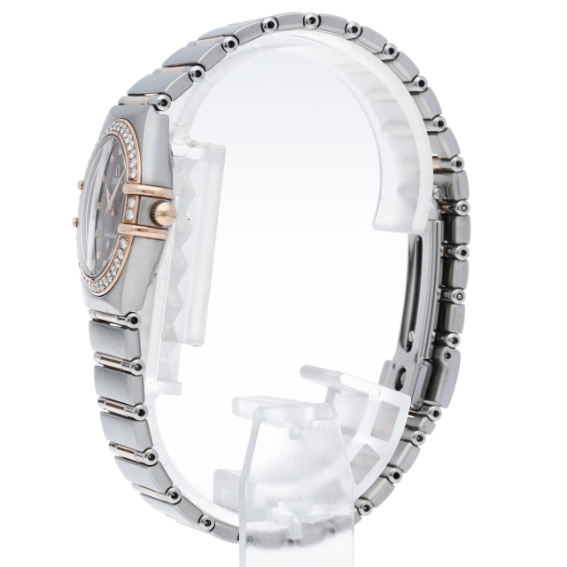 ピンクゴールドとステンレスのコンビモデル。ピンクゴールドの柔らかい質感が全体的に落ち着いた雰囲気を与えています。また、ブラウンダイヤルが非常に個性的で、高級感あふれる雰囲気を持っています。こちらはコンステレーションミニよりもやや大きめのスモールサイズになります。