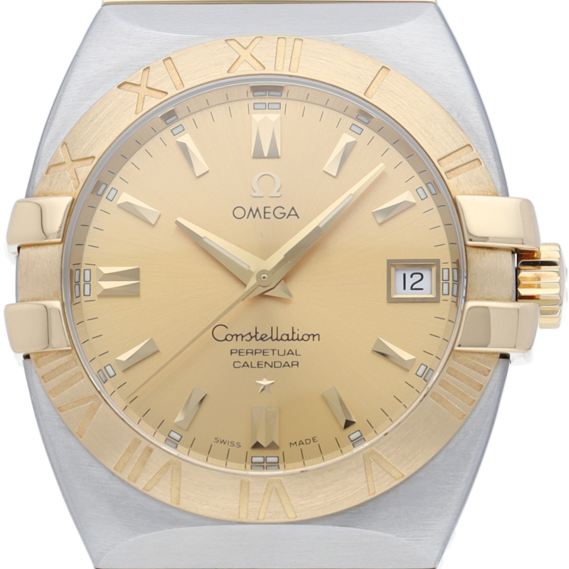 オメガを代表するドレスウォッチ「コンステレーション」。このダブルイーグルは、エレガントな美しさを秘めたコンステレーションです。ムーブメントにはパーペチュアルカレンダー機能付クォーツムーブメントを採用しています。