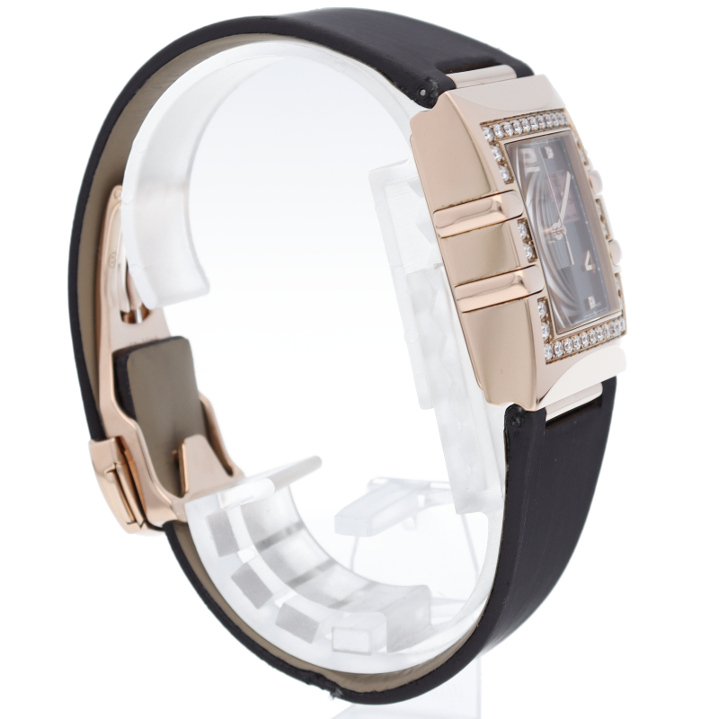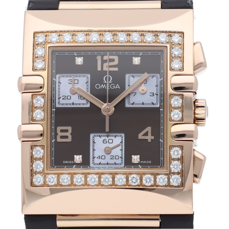 トノー(樽)型のケースに、様々な宝石がセッティングされたインデックスが特徴の「オメガ コンステレーション クアドレラ」。コンステレーション伝統の4つの爪にはダイヤが施されており、華やかな印象を一段と引き立たせます。